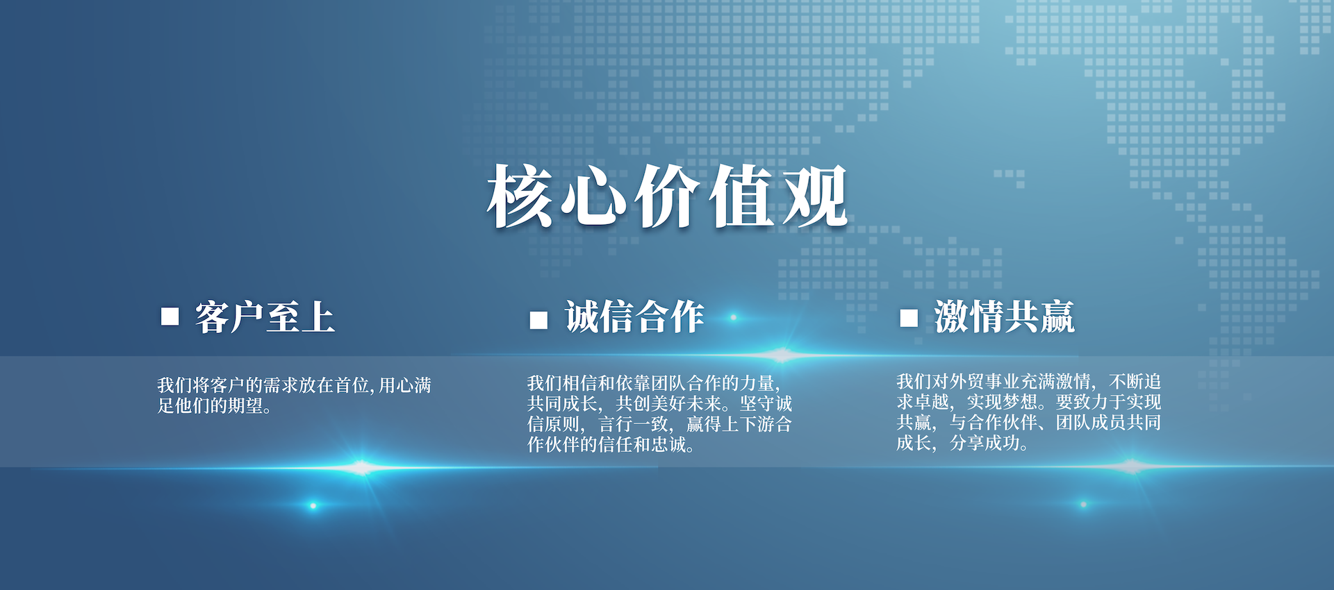 公司從成立伊始就緊緊圍繞外貿(mào)主業(yè),充分發(fā)揮擁有國際營銷渠道及掌握國際市場信息的優(yōu)勢,著力優(yōu)化業(yè)務(wù)結(jié)構(gòu),轉(zhuǎn)變增長方式,提高經(jīng)營質(zhì)量,強(qiáng)化以客戶需求為原動力的供應(yīng)鏈管理,建設(shè)出口商品生產(chǎn)基地。公司力爭發(fā)展成為以外貿(mào)為龍頭、實業(yè)為基礎(chǔ)、科技為依托,貿(mào)工技一體化發(fā)展的一流國際經(jīng)貿(mào)企業(yè)。